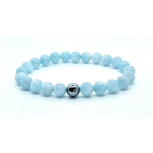 The matching Aquamarine Bracelet complements the necklace perfectly with genuine aquamarine round beads. The bracelet is elasticated, providing a comfortable and adjustable fit for most wrist sizes, and its simple yet elegant design makes it suitable for everyday wear or a layered look with other bracelets. It measures 7.5 inches in length.