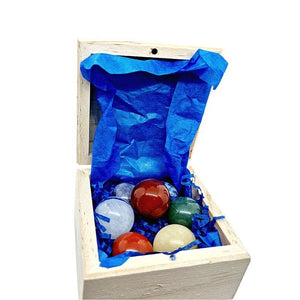 Measuring 20mm each, these spheres are the perfect size to hold and work with during your spiritual practices, and the included wooden box with a magnetic circle helps keep them safe and secure when not in use. With dimensions of 7cm x 7cm x 5cm, the box is compact and portable, making it easy to take your Chakra Crystal Sphere set with you wherever you go.