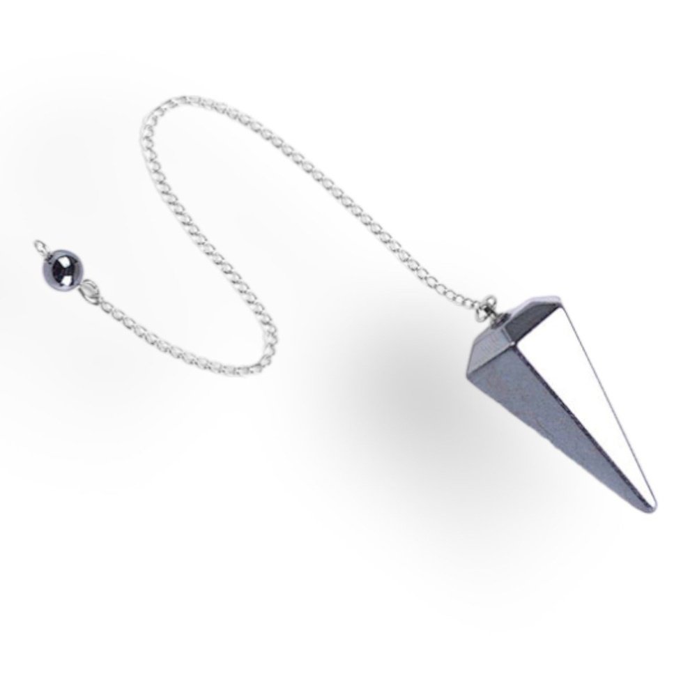 With a smooth, polished surface and a pointed end, this pendulum measures between 35mm and 20mm in length and comes with a 6 inch (150mm) silver-colored chain with a bead secured to the end.