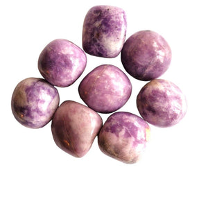 Carry it with you throughout the day as a talisman of relaxation and balance, or place it on your altar during meditation to amplify its calming properties. Each tumblestone is a unique work of nature, with its own variations in color and texture, adding to its charm and allure. Embrace the tranquil energy of lepidolite and let it guide you towards a life filled with peace, harmony, and emotional well-being.