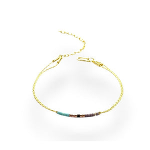 The warm tones of metallic brass blend harmoniously with delicate seed beads, creating a captivating accessory. The adjustable design ensures a comfortable fit for any wrist size, making it perfect for daily wear or special occasions. Whether you’re dressing up for a soirée or adding a touch of elegance to your casual ensemble, this bracelet effortlessly complements your unique style. Discover the artistry of Miyuki beads and embrace the versatility of this timeless piece.