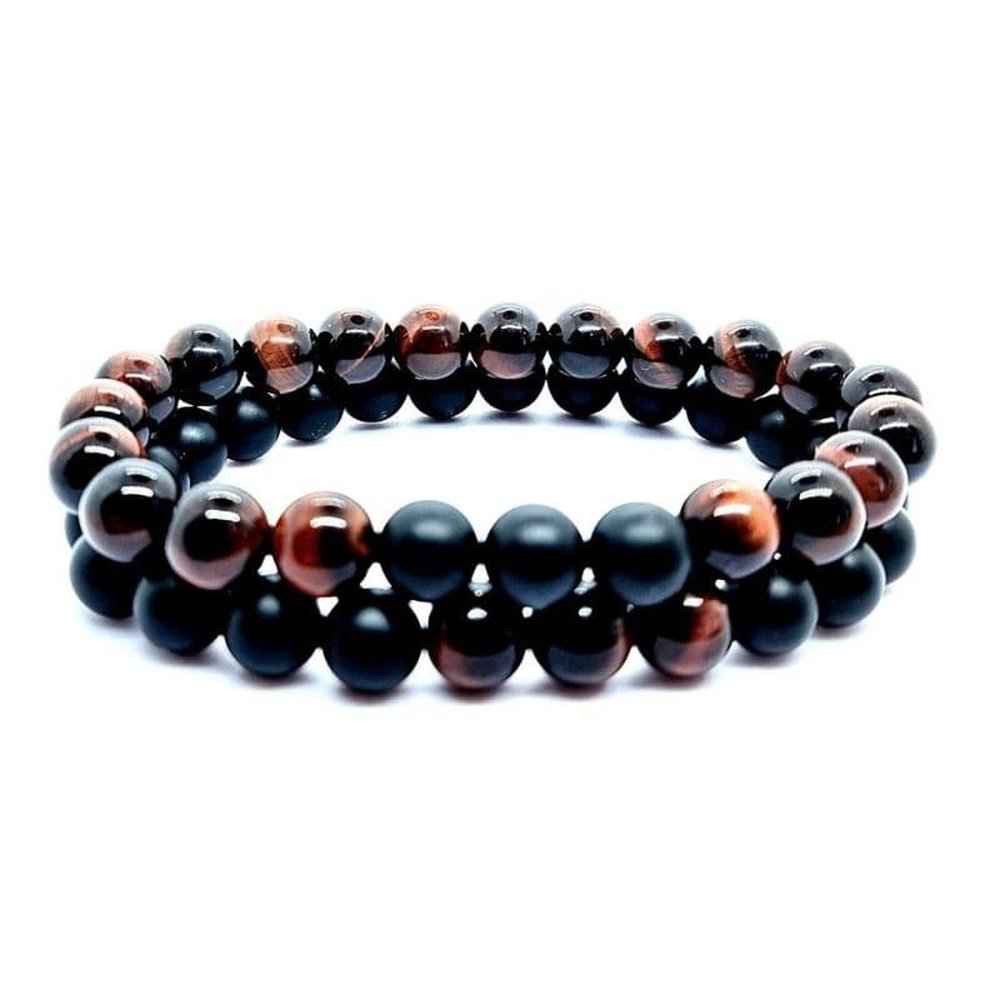 Red Tigers Eye and Onyx Bracelets Set can be worn by women, men, or as a couples bracelet.