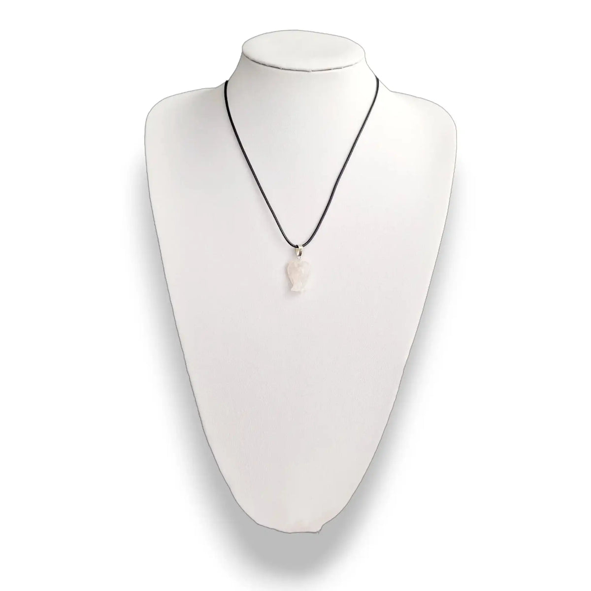Carved from genuine rose quartz, this angel-shaped pendant is both a meaningful symbol and a timeless accessory. Its soft pink hue radiates warmth and emotional healing, making it a favorite for those seeking balance, love, and peace.