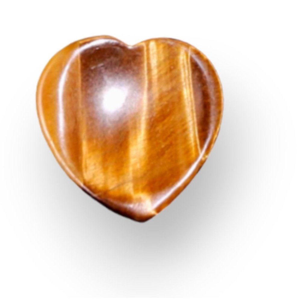 The Tigers Eye Palm Stone is a heart-shaped gemstone carved from authentic Tigers Eye.